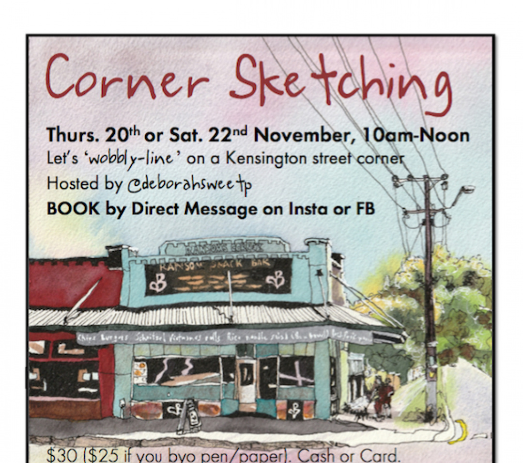 Sketch, squiggle & scrawl together on a local Kensington street corner. Local artist, Deborah Smalley, hosts a 2 hour "wobbly-line"... read more about the Corner Sketching in Kensington event